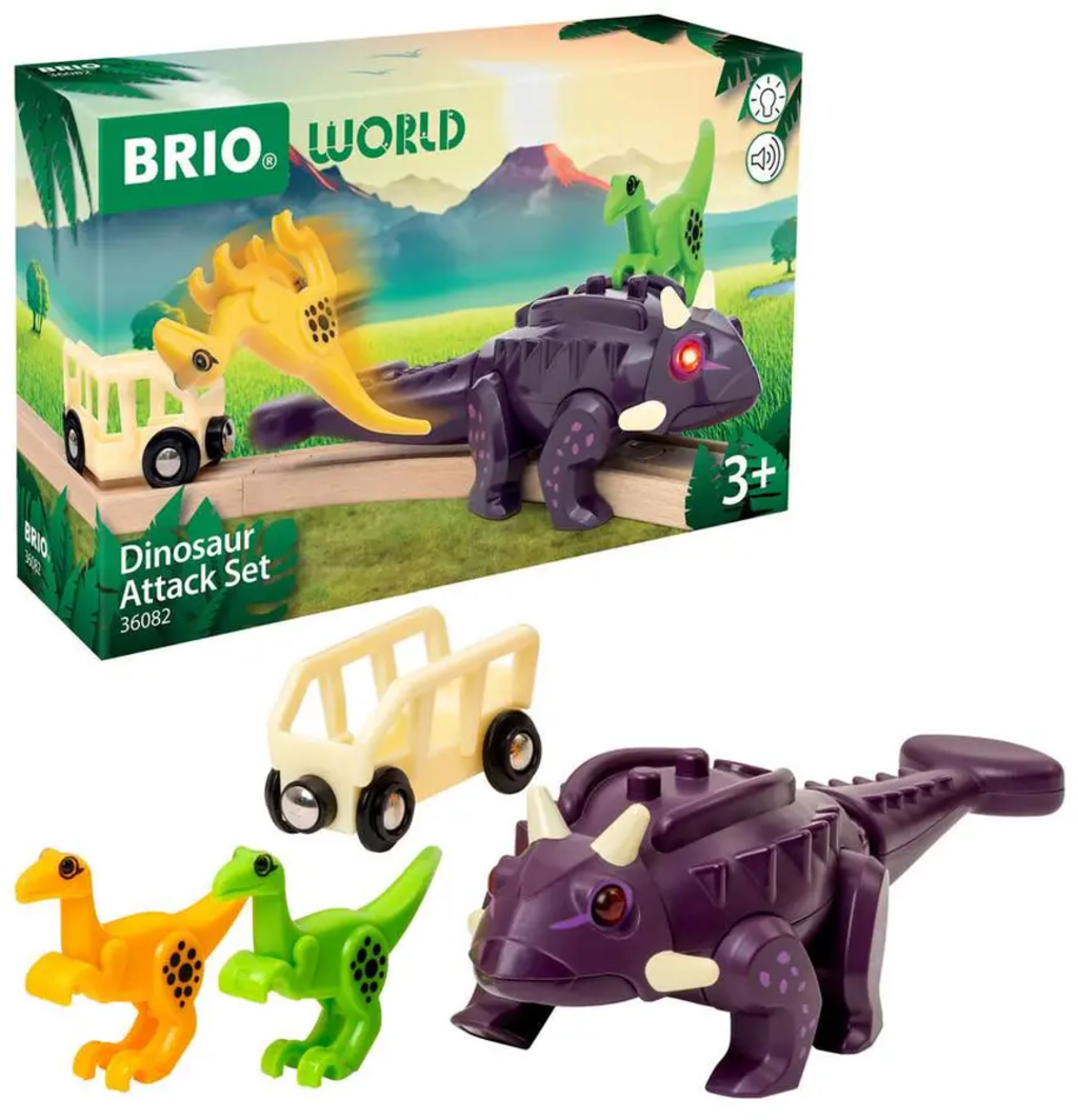 Here comes prehistoric power on the BRIO tracks! The Ankylosaurus defends itself with its powerful tail, chases away the velociraptors and even pulls wagons along the tracks. With light, sound and movement, it makes for exciting adventures in BRIO World - perfect for little dinosaur fans.