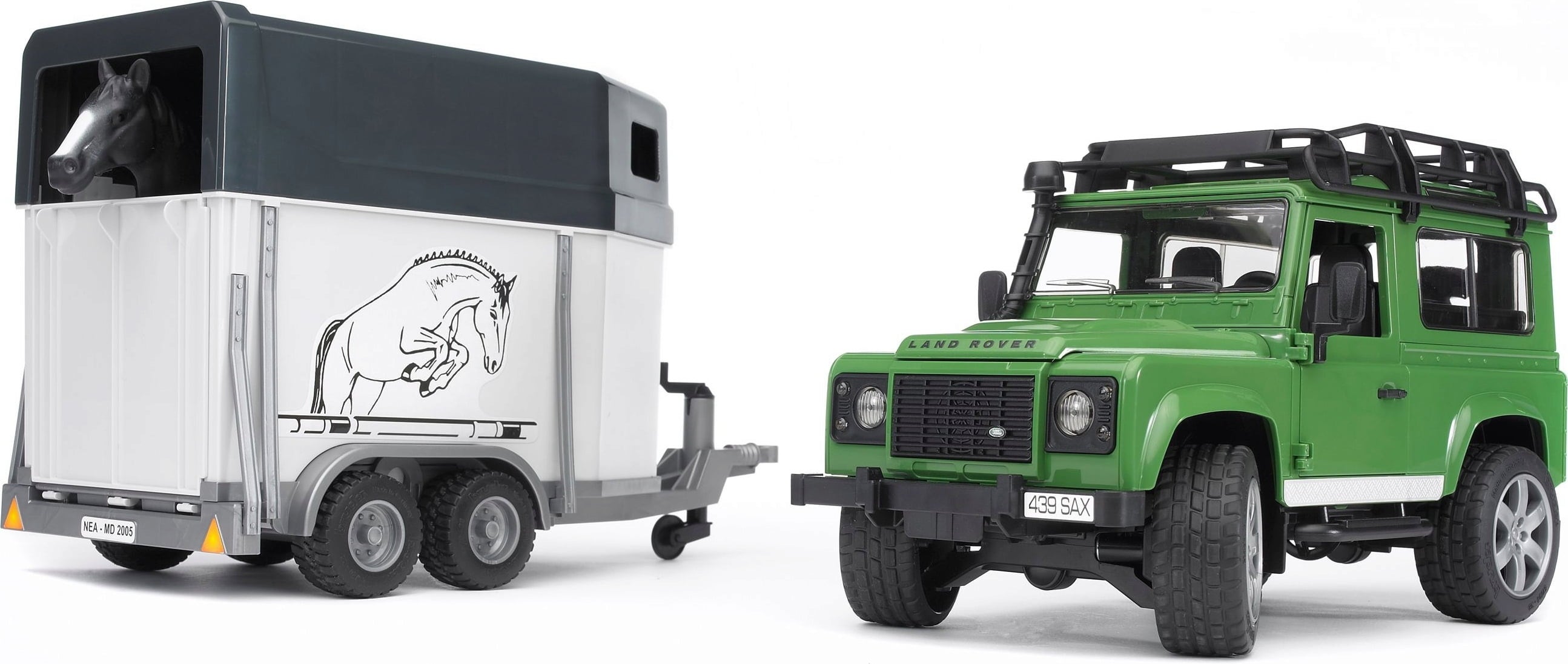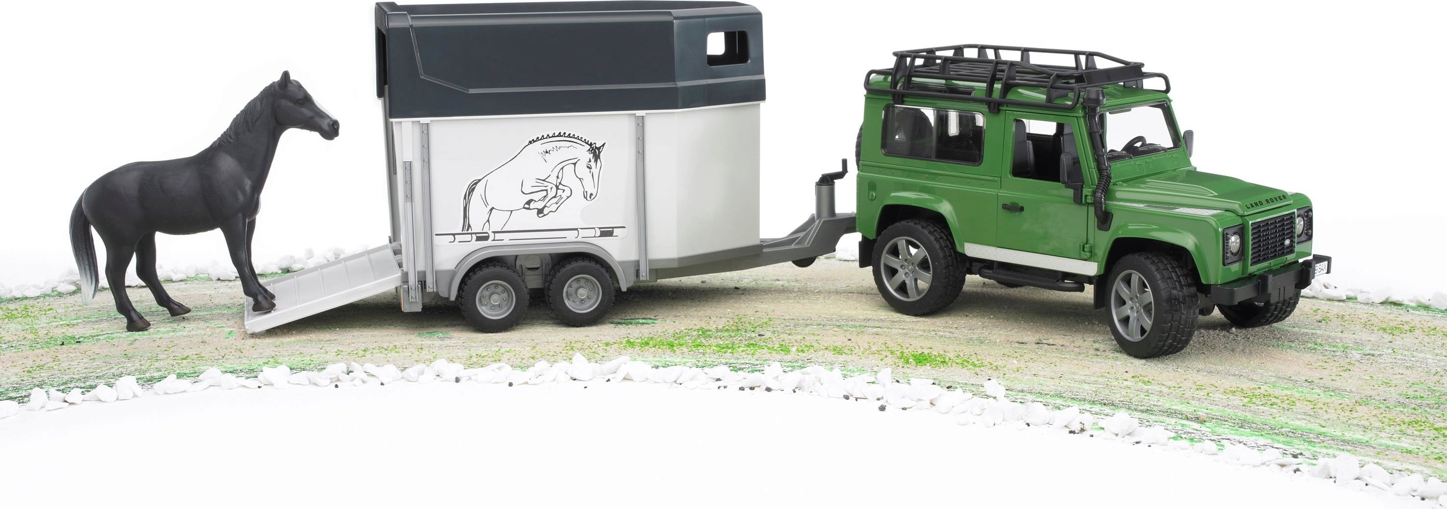 Bruder 02592 Land Rover Defender plus trailer plus horse, assorted