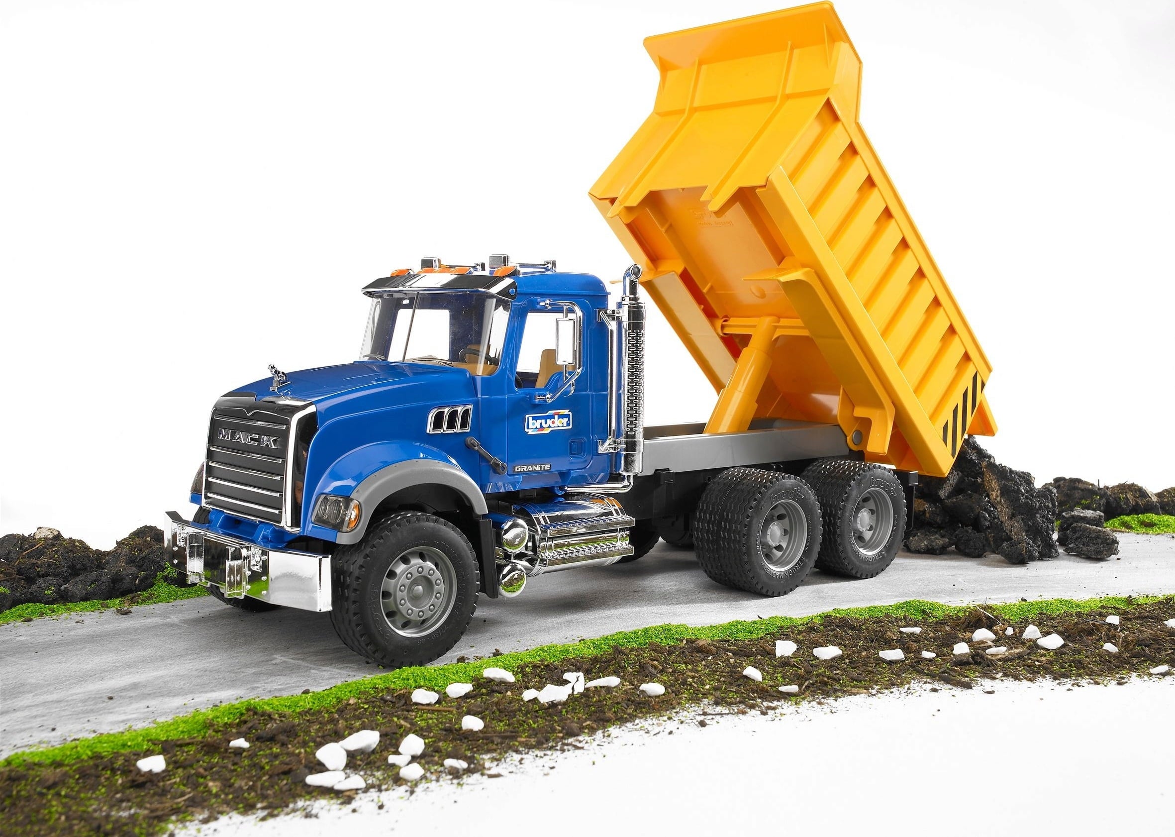 English reviews written for Bruder 02815 MACK Granite lorry with tipper body