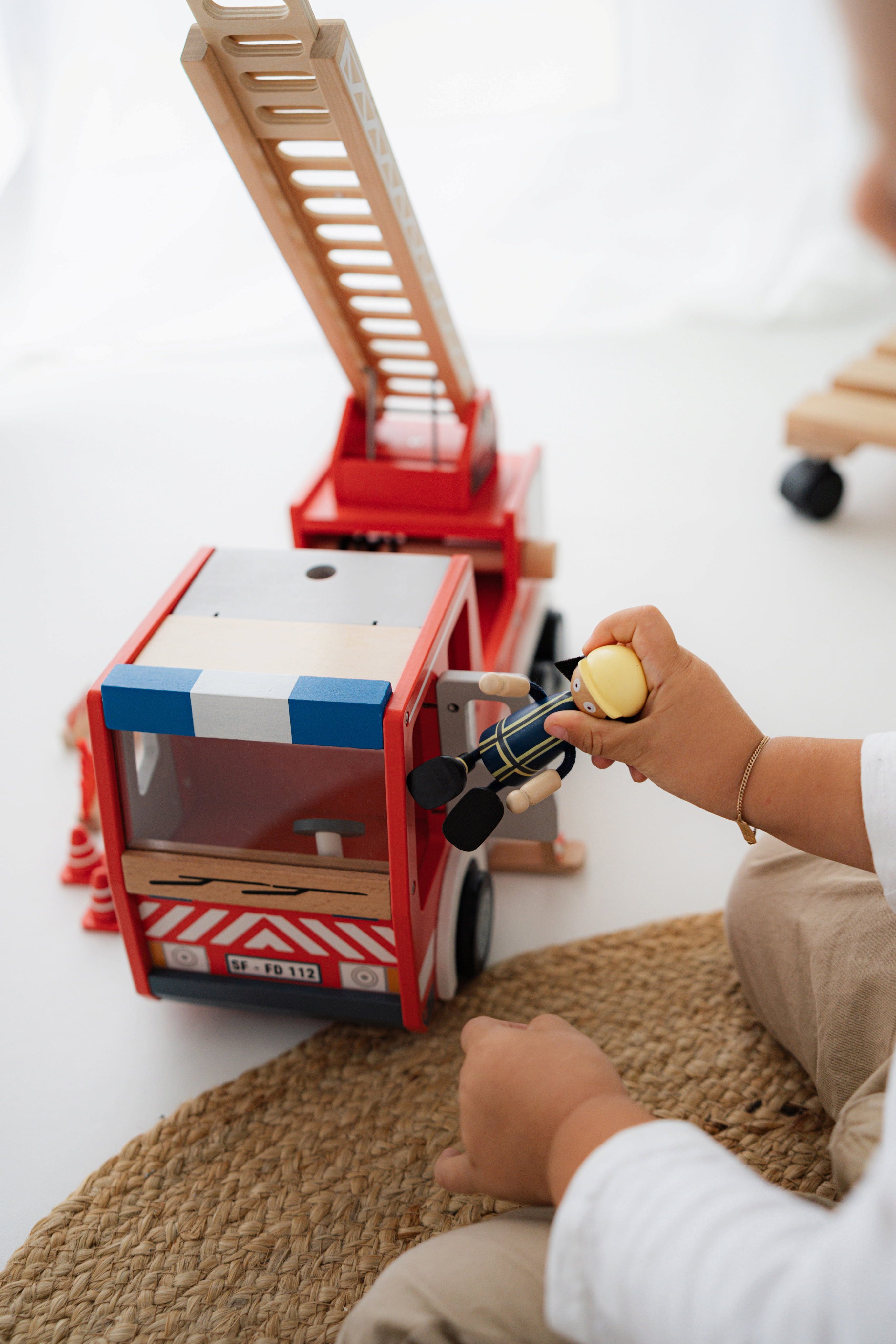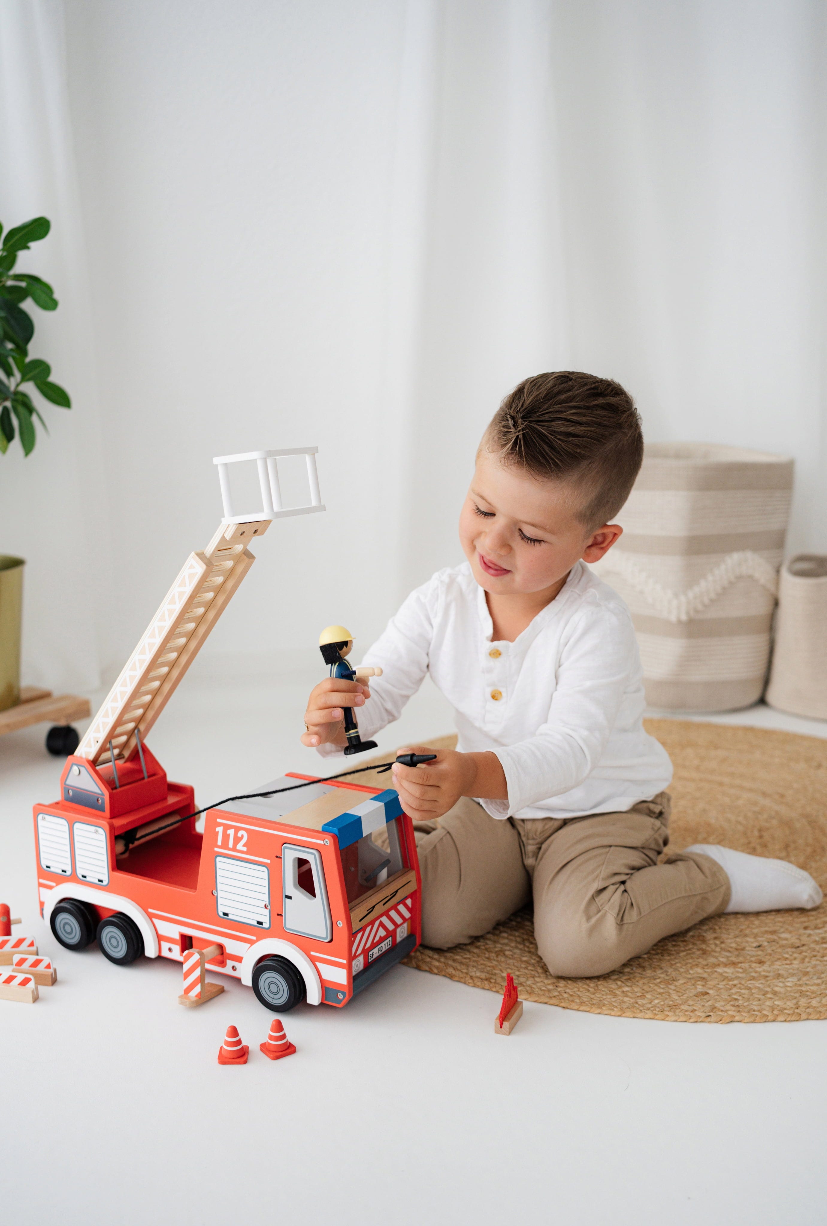 This fire brigade playset encourages children to engage in thrilling rescue operations. It includes a ladder, hydrant, pylons, barriers, and a figure, allowing kids to recreate realistic scenarios and unleash their imaginations. Designed to be sturdy and appealing, this set is perfect for countless hours of adventurous play.