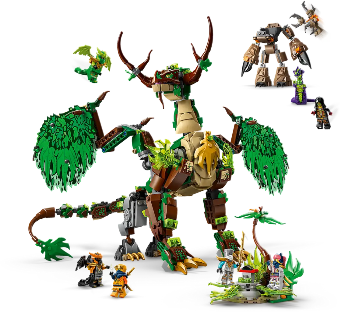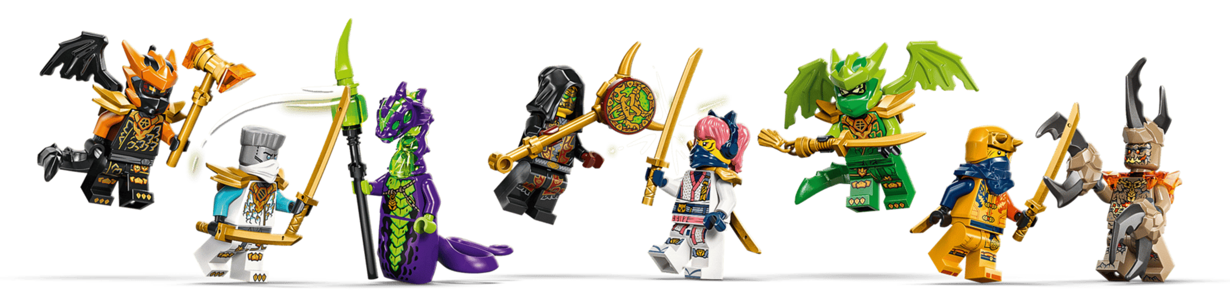 - 8 minifigures for imaginative play: Zane, Sora, Arin, dragon form Lloyd, dragon form Cole, Acid Monster, Earth Monster and Loyalist Leader