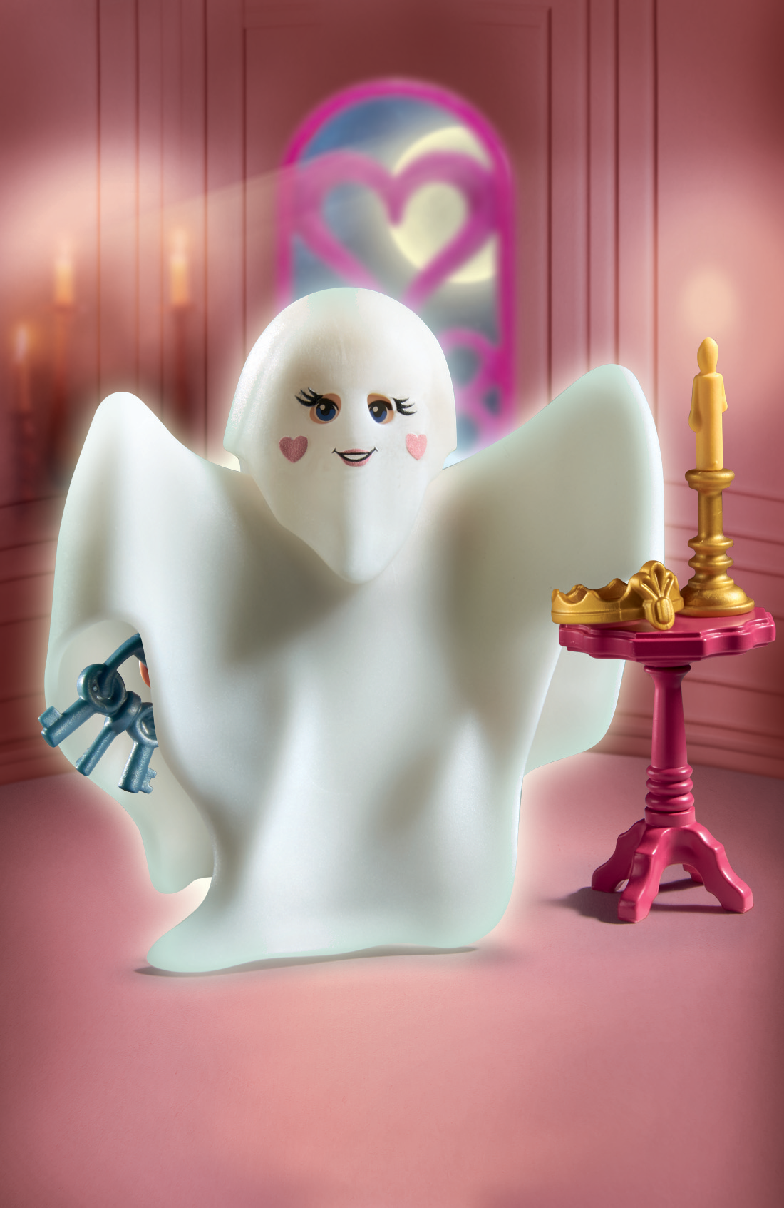 Contents: 1 princess, 1 crown, 1 ghost costume, 1 ghost bonnet, 1 table, 1 bunch of keys, 1 candlestick, 1 candle