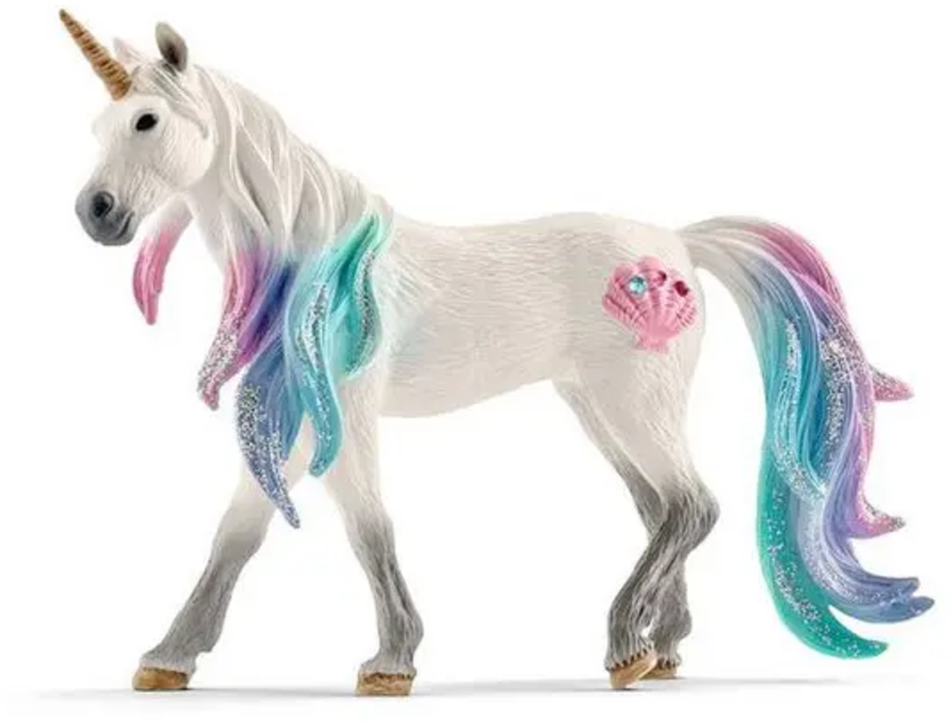 Deep in the sparkling underwater world of Meamare lives the graceful sea unicorn mare with her family. Her coat is decorated with beautiful shell patterns and her mane and tail shimmer with a magical lustre. The detailed and lovingly hand-painted figure invites children to immerse themselves in the magical world of bayala® and experience their own imaginative adventures.